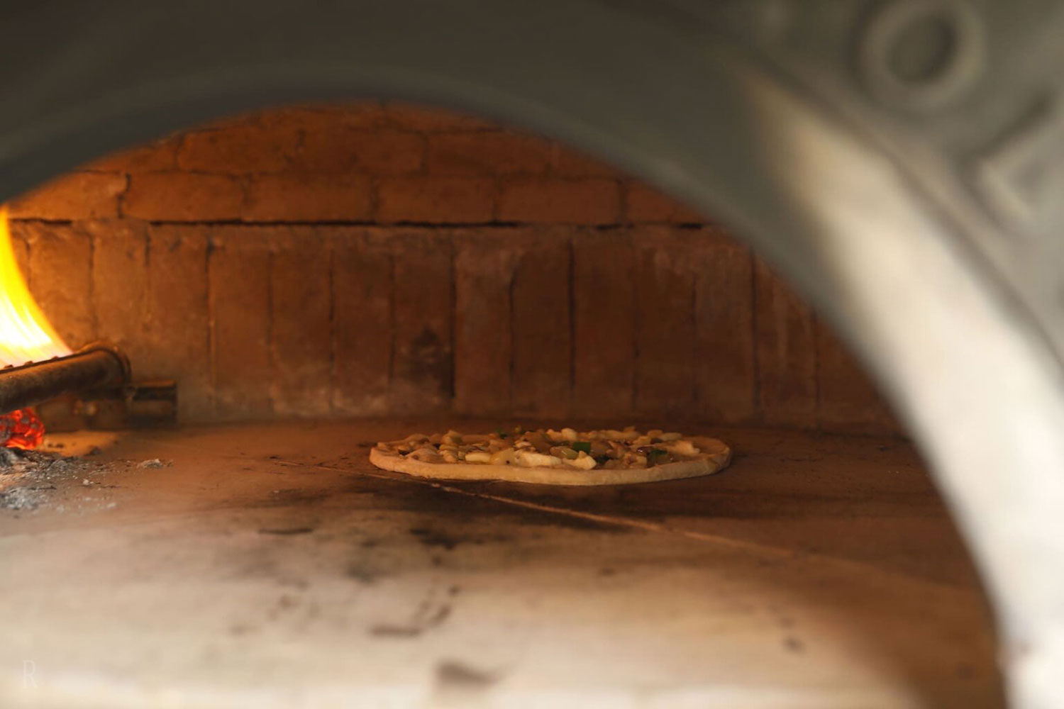 本格的なピザ釜でピザづくり体験。生地をこねて、好きな具材をトッピング。